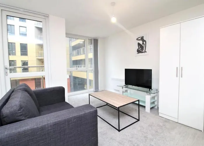 L'appartement est niché dans le quartier "Salford", assez proche d'University House. La Bibliothèque John Rylands se trouve à environ 1 km de la résidence à Manchester. Le Centre des expositions EventCity est aussi juste à une courte distance en taxi.